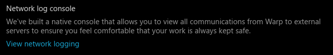 This breaks user trust, as it creates a blind spot for communications not surfaced to the user, despite the claim that the network monitor “allows you to view all communications from Warp to external servers to ensure you feel comfortable […]”.